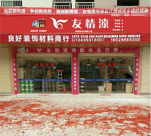 羅老板首先把友情漆河源總代理的店面,換了個新地址,擴大了門面規(guī)模,壯大了經(jīng)營實力,確保為廣大客戶的產(chǎn)品銷售和服務(wù)供應(yīng),提供到強有力的保障。