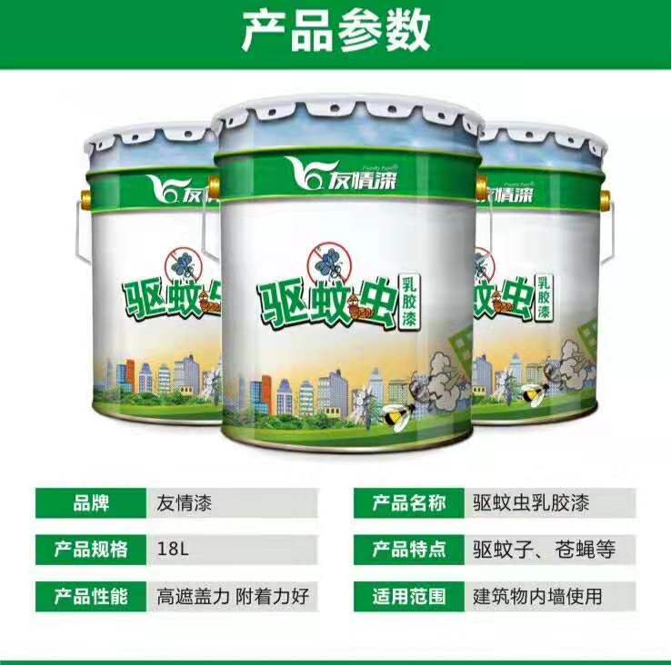 低碳環保友情漆推出驅蚊蟲乳膠漆采用無毒,安全環保的植物精油,通過吸附劑吸附達到緩釋功效,延長驅蚊時間,從而可降低乳膠漆的VOC,去除異味,解除產品的毒性,產品不但具有優異的耐水性耐堿性能,易洗耐擦,防霉防藻,安全環保,無毒等優點,還具有持久高效驅蚊以及凈化空氣的功能。友情漆的這款防蚊涂料是經過市場認可的廣受歡迎的一款防蚊涂料產品,對我國尤其是南方的消費者尤其需要。