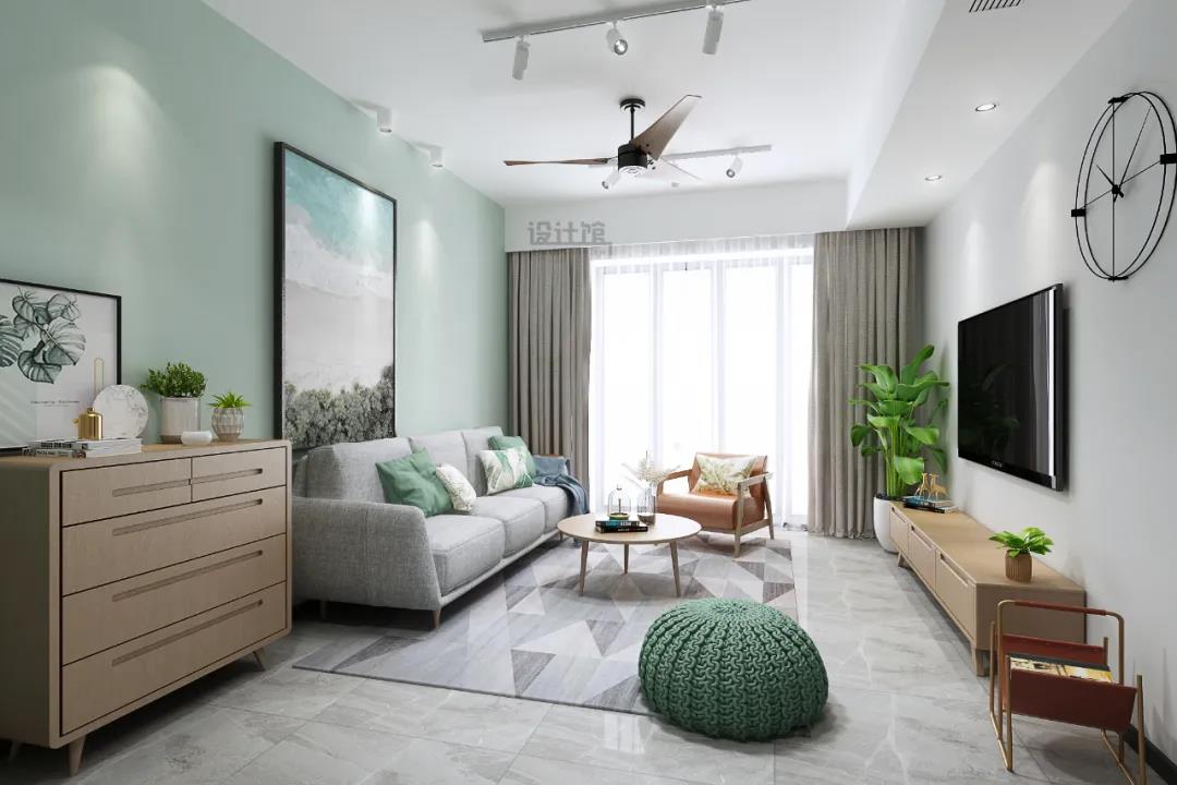 ▲淡綠色的墻面,配上綠植與綠色的軟裝配飾,使得客廳充滿生機感。