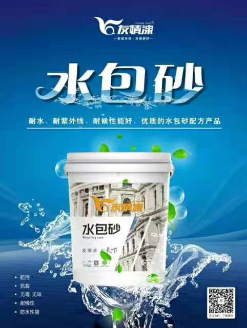 水包砂水性多彩涂料,通過噴涂可同時呈現多種色彩的花紋,使各種色彩相互交錯,具有類似于天然花崗巖或大理石的裝飾效果,主要用于高檔建筑物的外墻。集裝飾性、安全性及經濟性于一身,是近年來建筑涂料業研究的熱點。