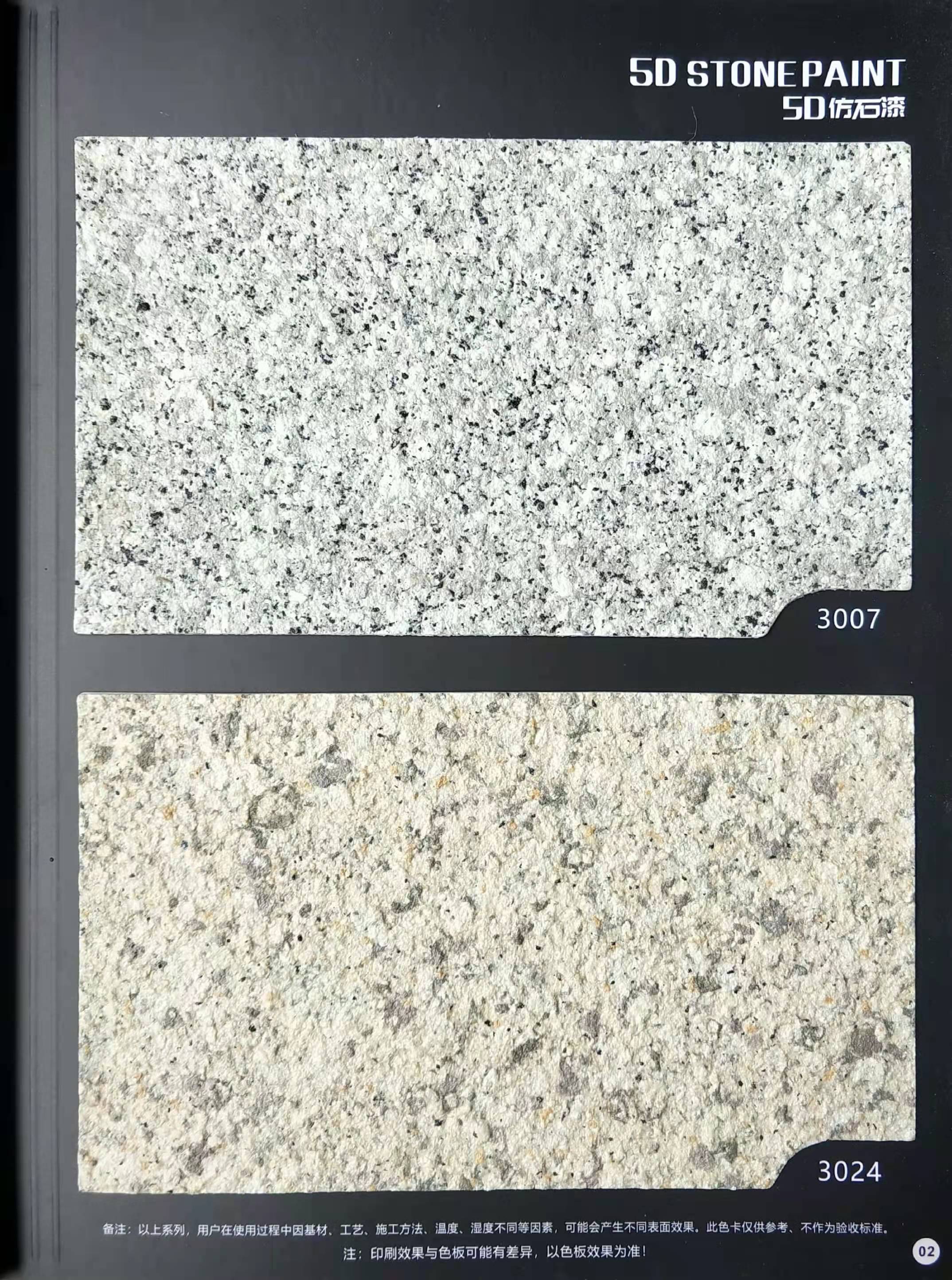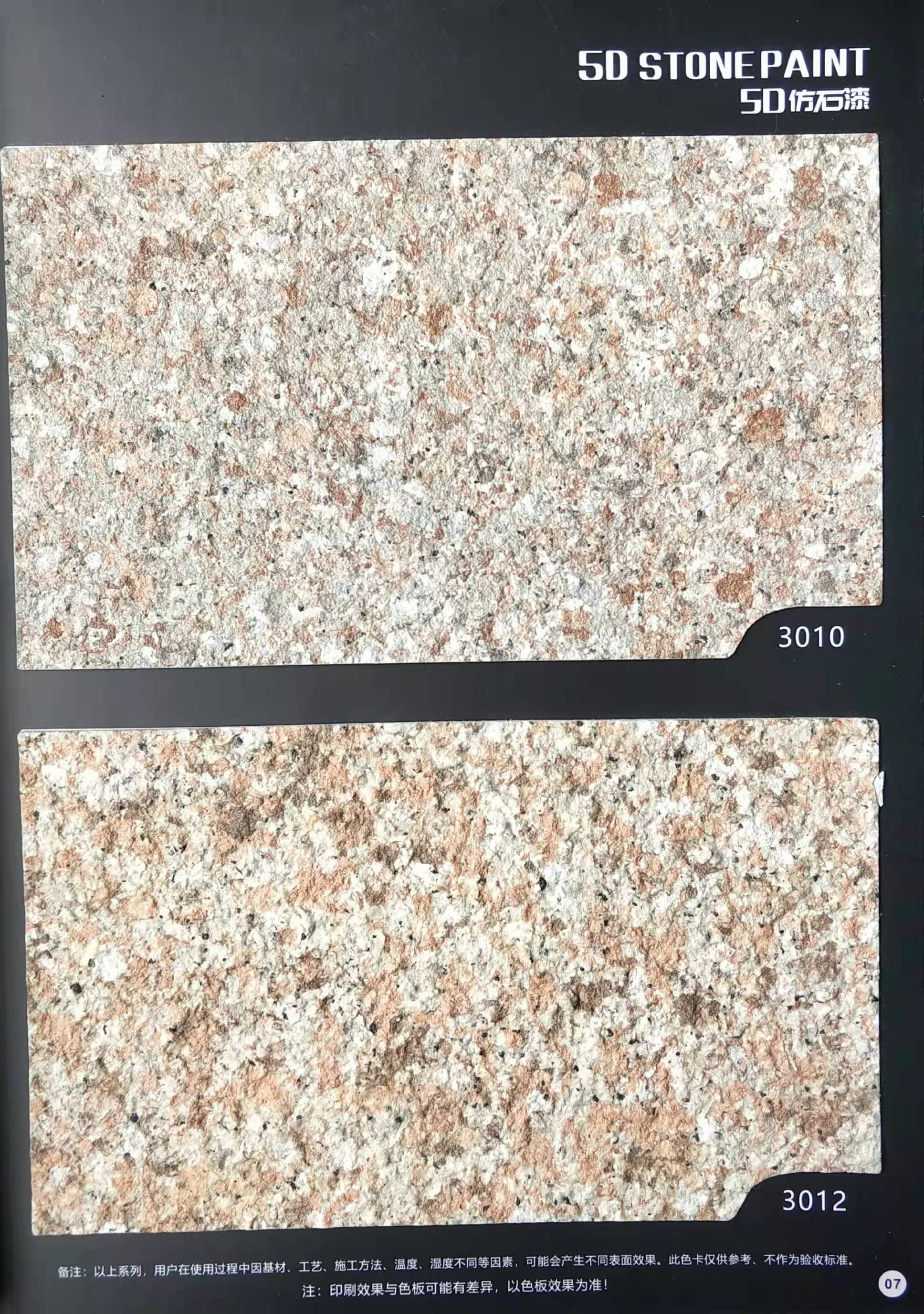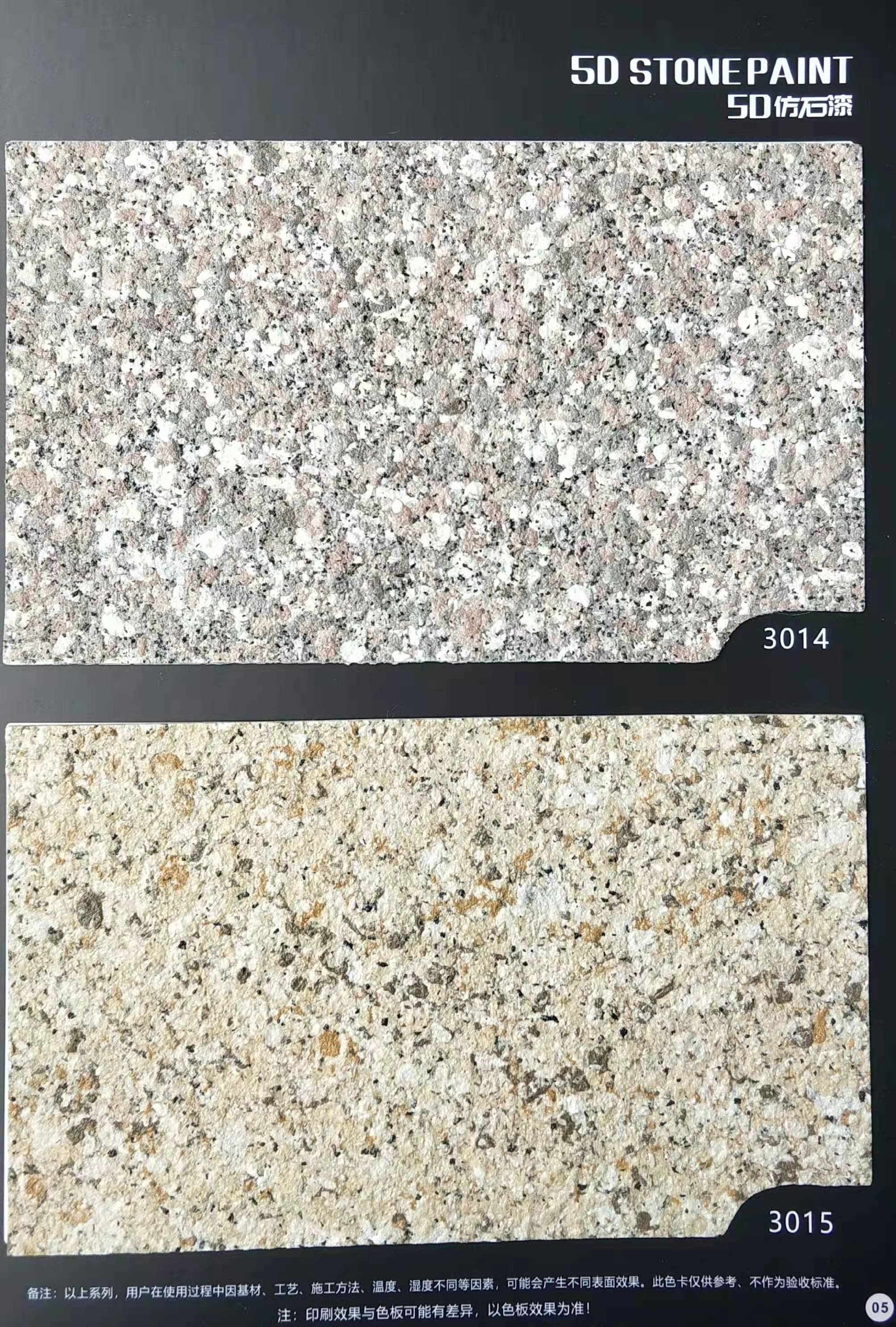 5D仿石漆產品采用純水性配方,符合環保要求無輻射。·具有極高的石材仿真度,仿花崗巖、大理石程度可以達到95%。營造出逼真的花崗巖、大理石效果,讓外墻高雅華貴,質感強烈,個性鮮明。