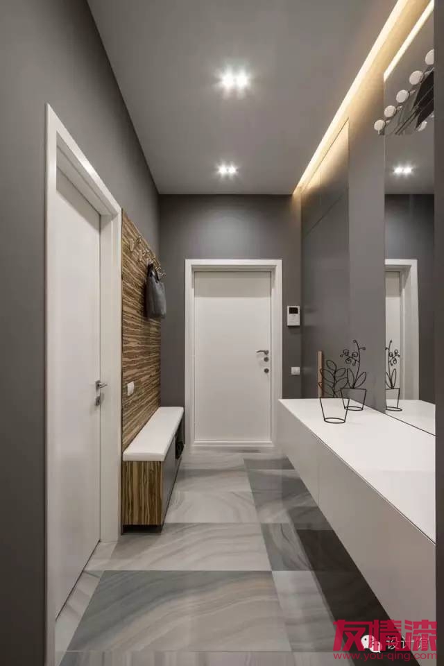 前面說到墻面白茫茫的走廊,很low。這也不是絕對的,在藝術(shù)中有一種相當高的境界叫“留白”,這種裝飾手法很考究整體的和諧搭配。通過合理的搭配,同樣能營造出溫馨大氣的效果哦!