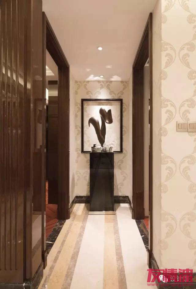 走廊作為一個比較狹窄的空間,雖然不是主要空間,但作為有品味追求的家庭,自然也是不能掉以輕心;白茫茫的走廊墻面,是不是有點太單調(diào)了?畢竟走廊也是客人能輕易就看到的區(qū)域,所以走廊的墻面裝飾也是相當重要的面子工程哦。