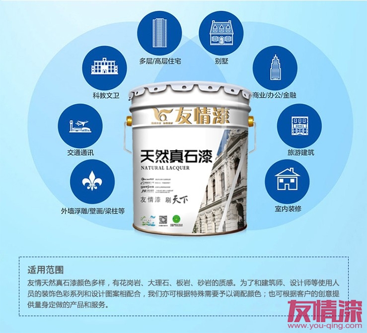 目前,真石漆應用范圍更是日益廣泛,發(fā)揮的裝飾作用也在變大。
